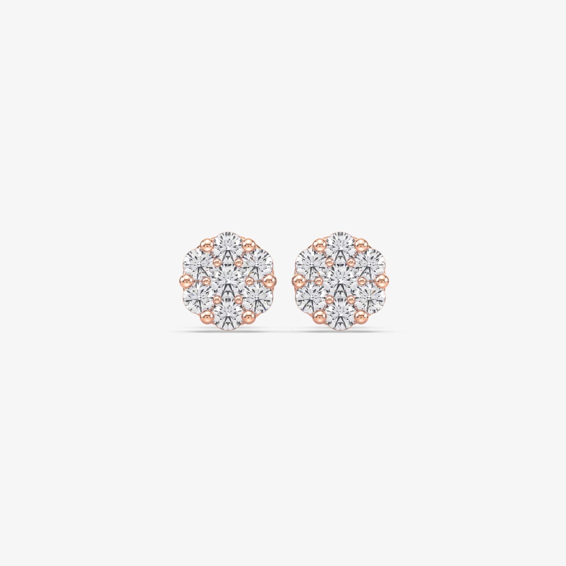 A pair of cluster earrings set with natural diamonds in 14k rose gold.
