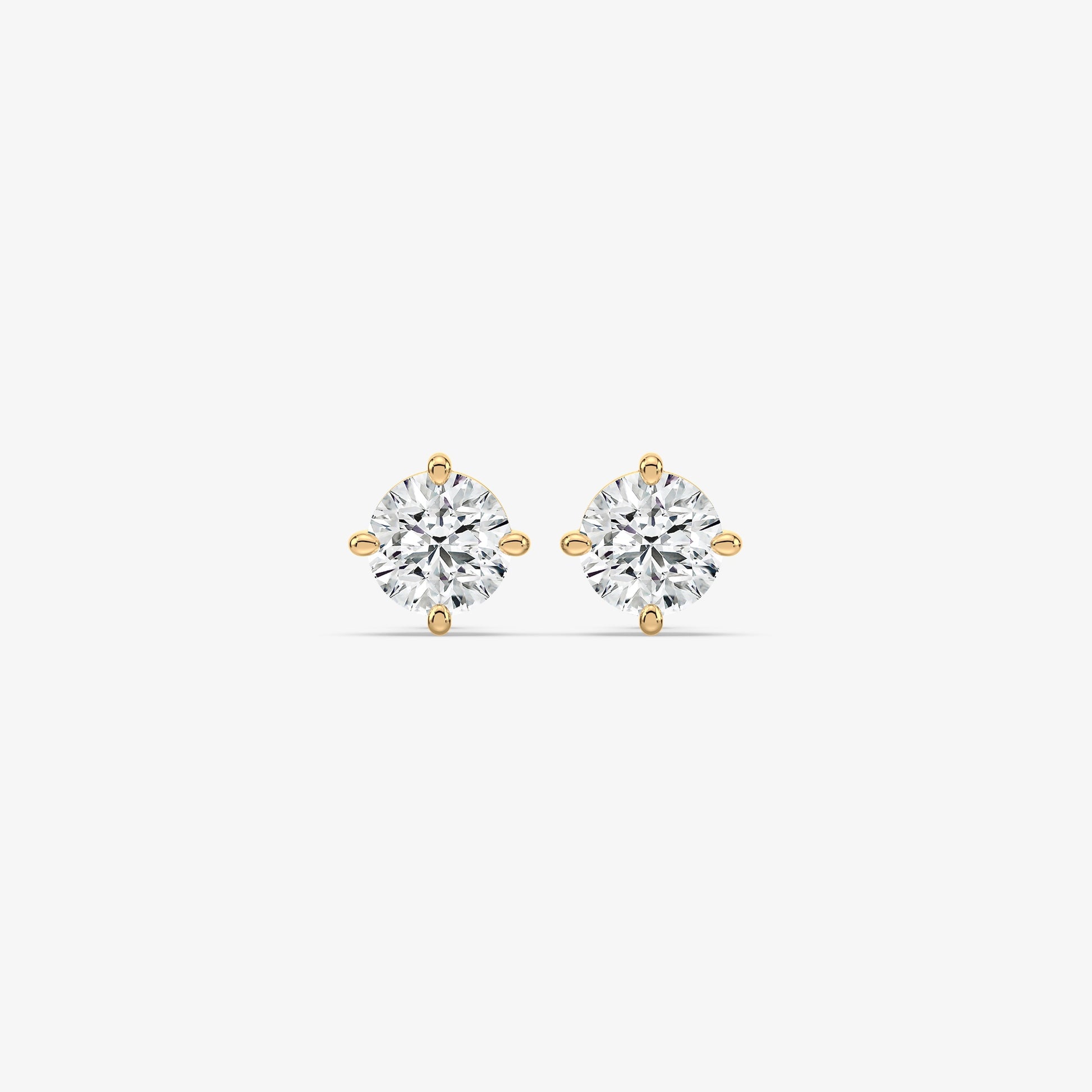 A classic 4 prong round earrings set with lab diamonds in 14k yellow gold.